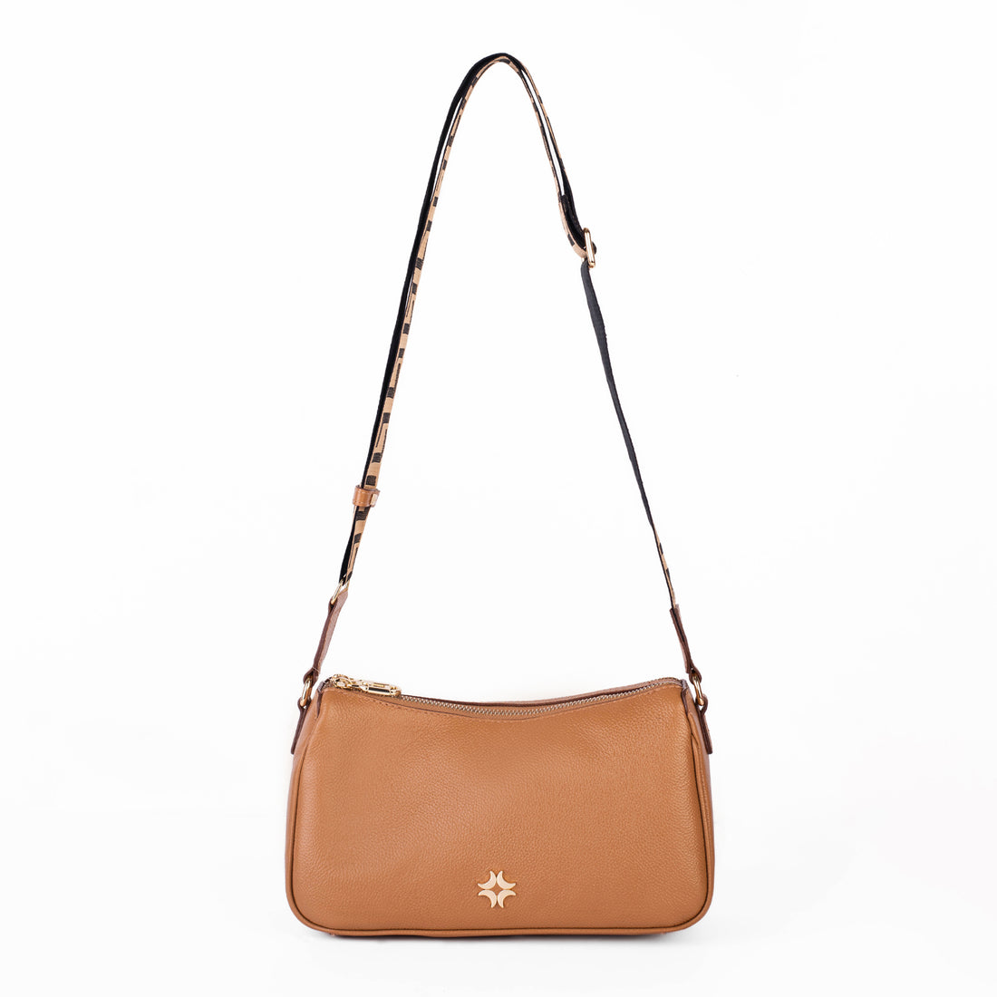 Cierre principal con tapa frontal con botón magnético. Correa con altura regulable y detalle de...