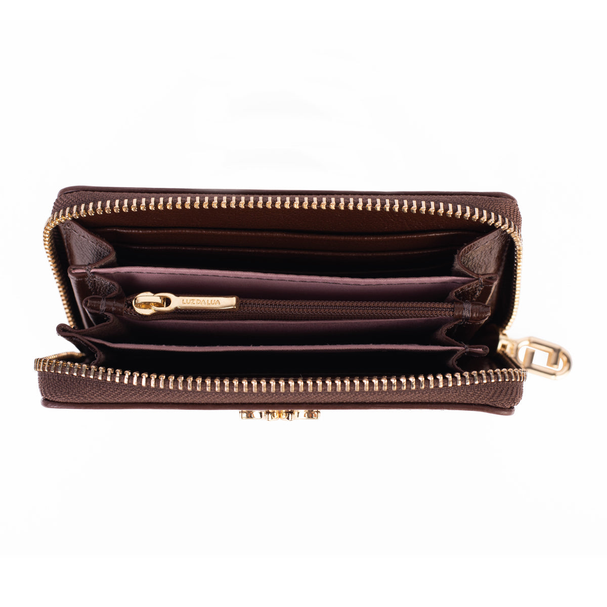 - En su interior dispone de un tarjetero, un bolsillo monedero con cremallera y espacio para billetes.