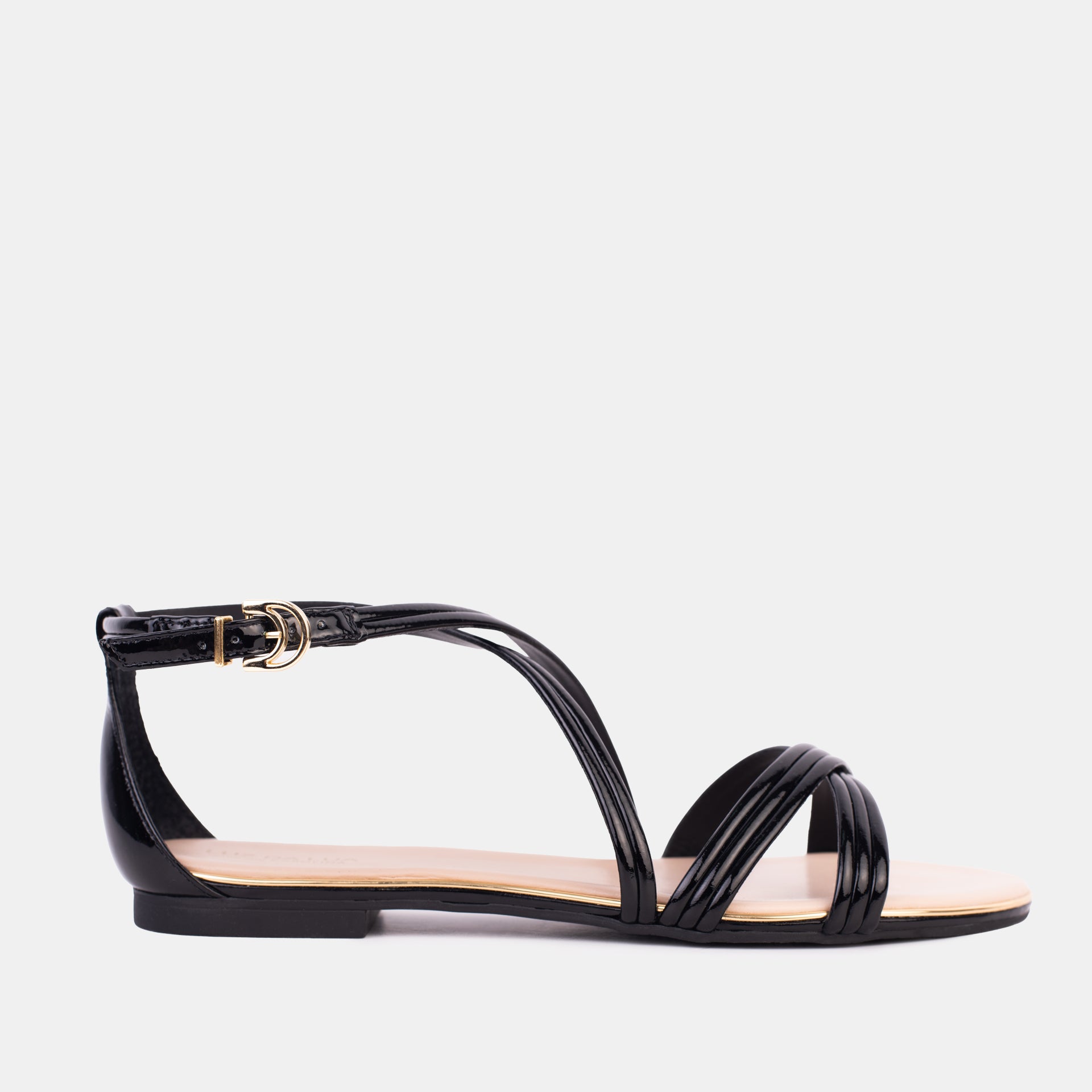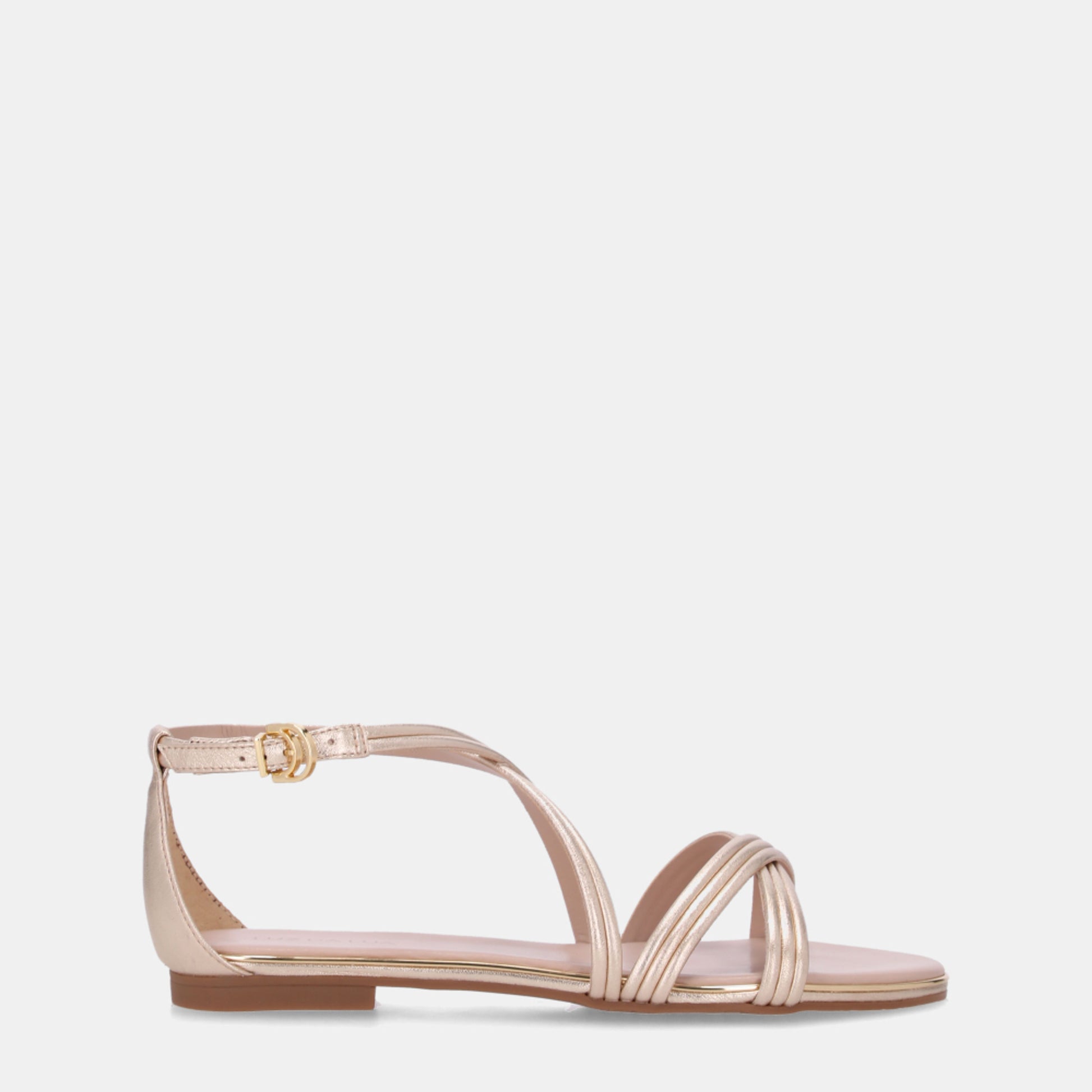 Cierre con hebilla de metal dorado, en el tobillo.
