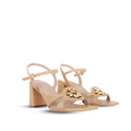 - Correa ajustable con hebilla dorada en el tobillo.