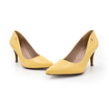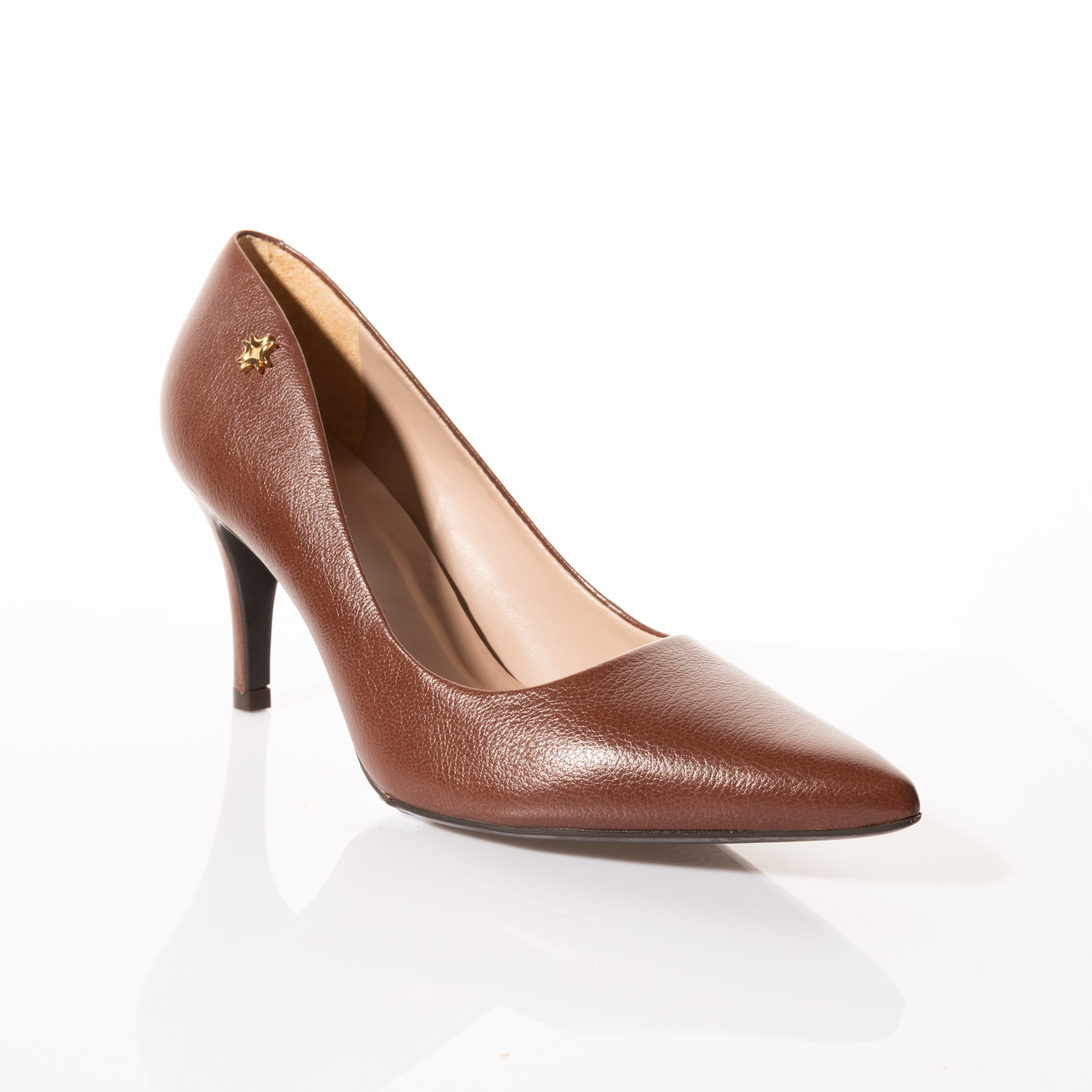 - Puntera en punta y tacón medio fino.